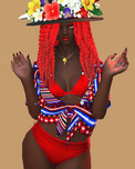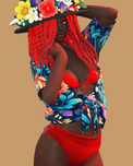 The bikini top is dyeable (for f models) on channel 1. The top's inner sleeves dye on channel 2. The prints do not dye.
